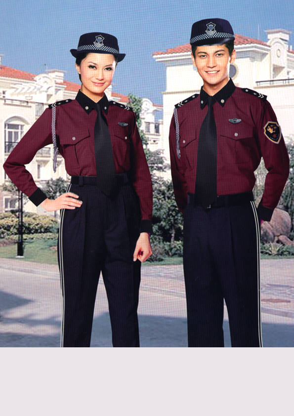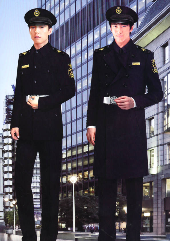保安员服装分为:春秋冬常服、执勤服、押运服、训练服、长短袖衬衣、夏裤、女裙、棉服等。帽子分为:大檐帽、卷檐帽、工作帽、贝雷帽、棉帽等。鞋分为:单皮鞋、棉皮鞋、押运员高筒皮靴、女保安员高筒皮靴、训练用鞋等。配饰标志为:帽徽、肩章、臂章、保安从业单位标志号牌、专用钮扣、专用腰带扣、领带、领带夹等。在治安环境越来越好的今天,“保安”这一岗位不再是单一的岗位了,现在越来越多的企业、单位把“保安”的岗位用途增强了,不仅仅只是用来担任安保工作,更是用来做为一个体现形象及服务的岗位,所以现在有部份企业、单位的保安服装也越来越时尚、简洁、大方了,往那里一站犹如一道风景!